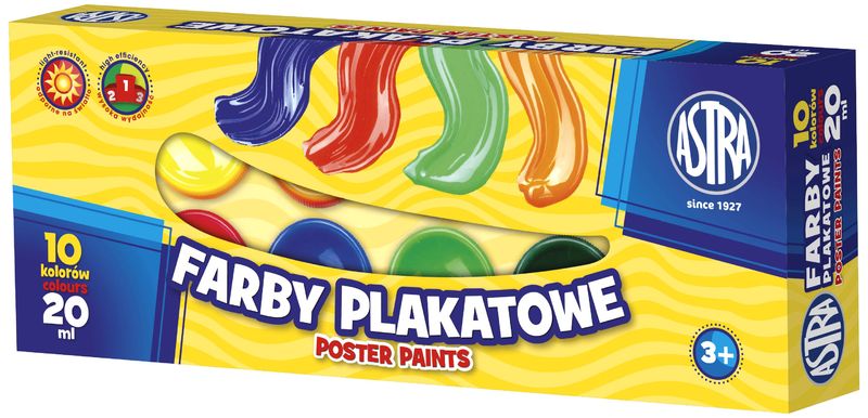 Farby szkolne plakatowe zestaw 10 kolorów x 20 ml, Astra