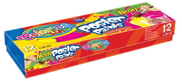 Farby szkolne plakatowe zestaw 12 kolorów x 20 ml Neonowe, Colorino