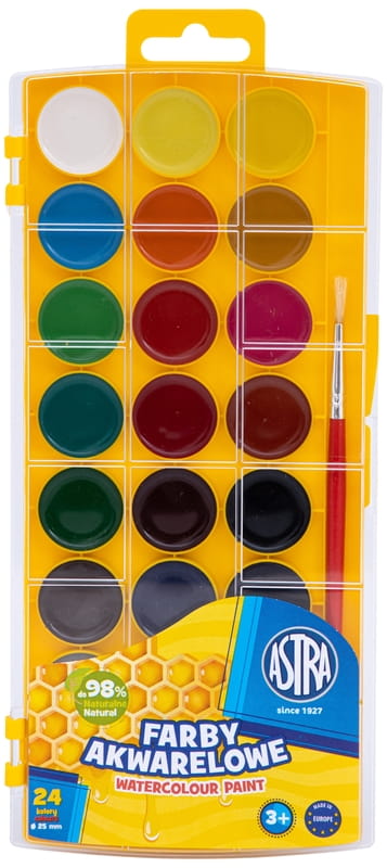 Farby wodne akwarelowe 24 kolory + pędzelek 25 mm, Astra