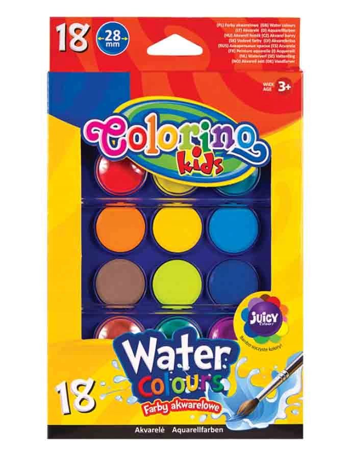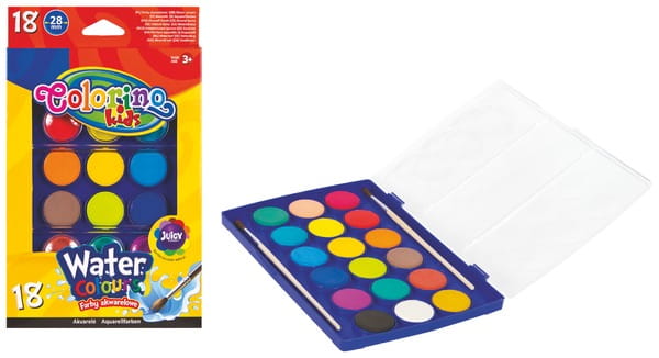 Farby wodne akwarelowe zestaw 18 kolorów duża pastylka, Colorino