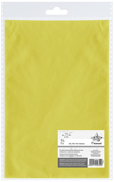 Filc dekoracyjny. Format: A3. Grubość: 2 mm, gramatura: 200 g. Kolor: żółty cytrynowy.