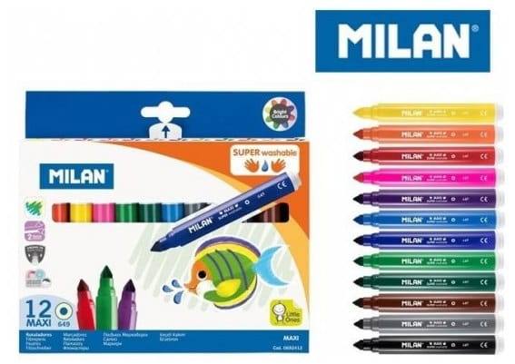Flamastry 12-kol. Maxi Super Washable, Milan