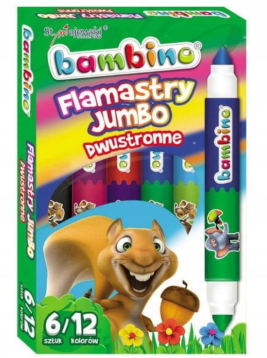 Flamastry Bambino dwustronne grube zestaw 6 sztuk = 12 kolorów, St.Majewski