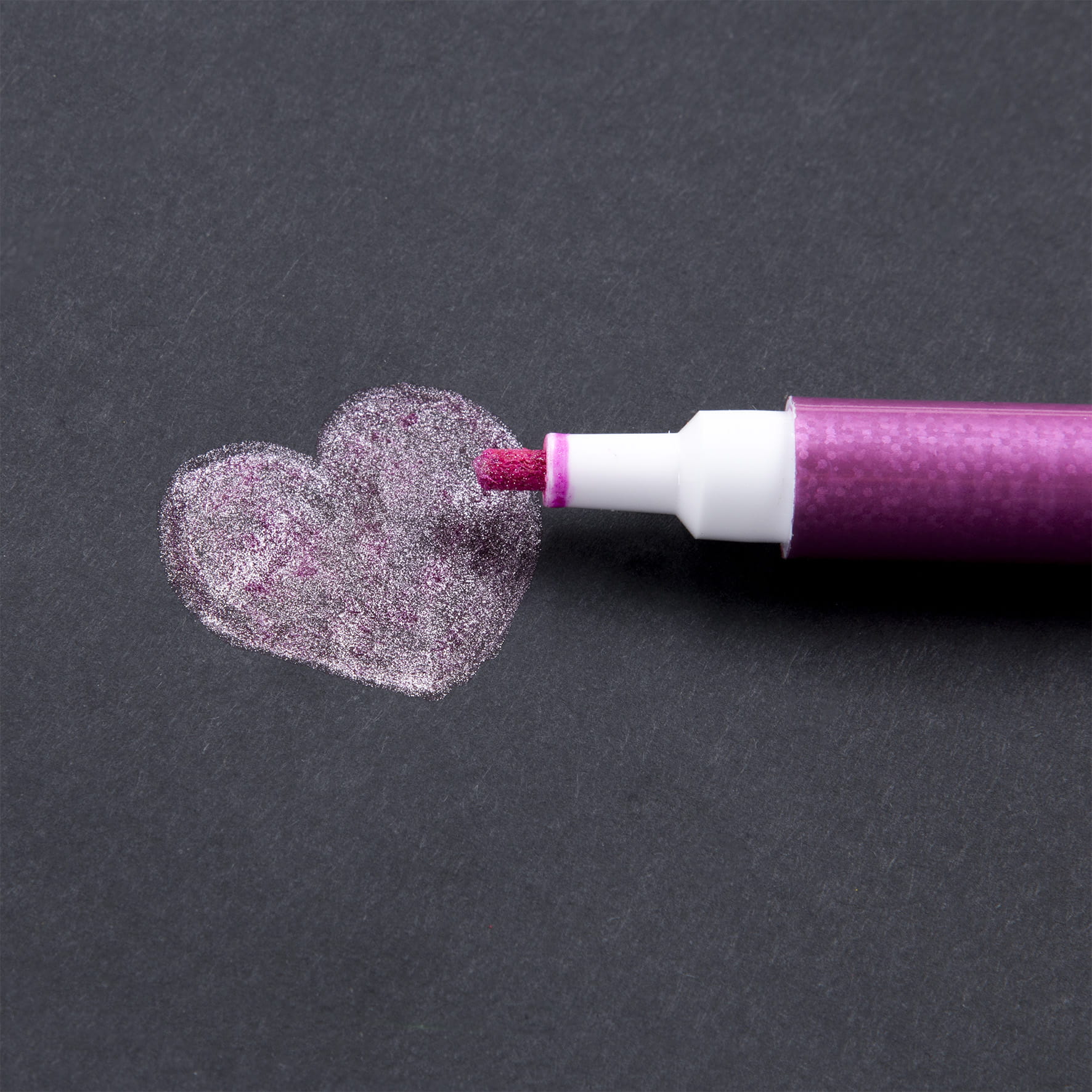 Coś dla wielbicieli blasku i wyszystkiego co błyszczy. Markery brokatowe w 5 intensywnych kolorach - różowym, fioletowy, niebieski, zielonym i żółtym. Przed użyciem należy wstrząsnąć markerem, a następnie napompować końcówkę przyciskając kilka razy, aż napełni się tuszem. Baw się i uzyskuj niesamowite efekty artystyczne na różnych powierzchniach. Pięknie ozdobią zeszyt, zaproszenie czy prezent, a dodatkowo nadadzą im spektakularny brokatowy połysk. Efekt WOW gwarantowany!