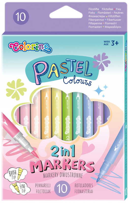 Flamastry dwustronne pastelowe zestaw 10 kolorów Pędzelkowe - Zwykłe Colorino
