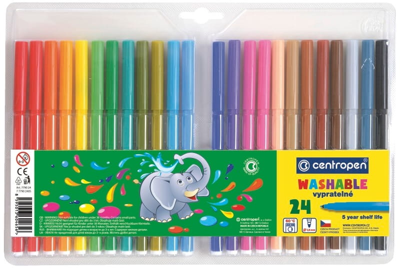 Flamastry szkolne zmywalne zestaw 24 kolorów, Centropen