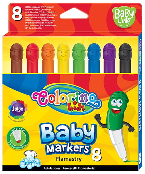 Flamastry zmywalne Baby zestaw 8 kolorów Główki Colorino kids