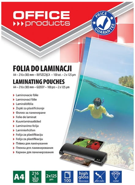 Folia do laminowania A4 125 mic 100 sztuk błyszcząca, Office Products