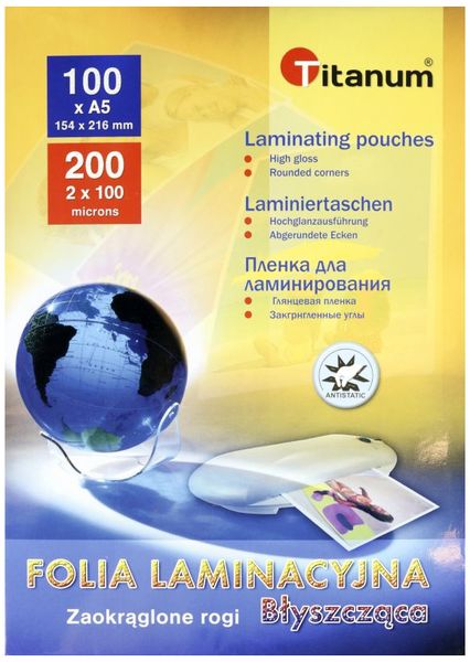 Folia do laminowania A5 100 mic. 100 sztuk, Titanum
