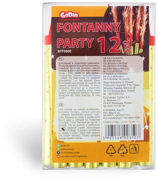i niezwłocznie oddalić się na odległość ok.1 m. Z fontanny sypią się złoto-srebrne iskierki.