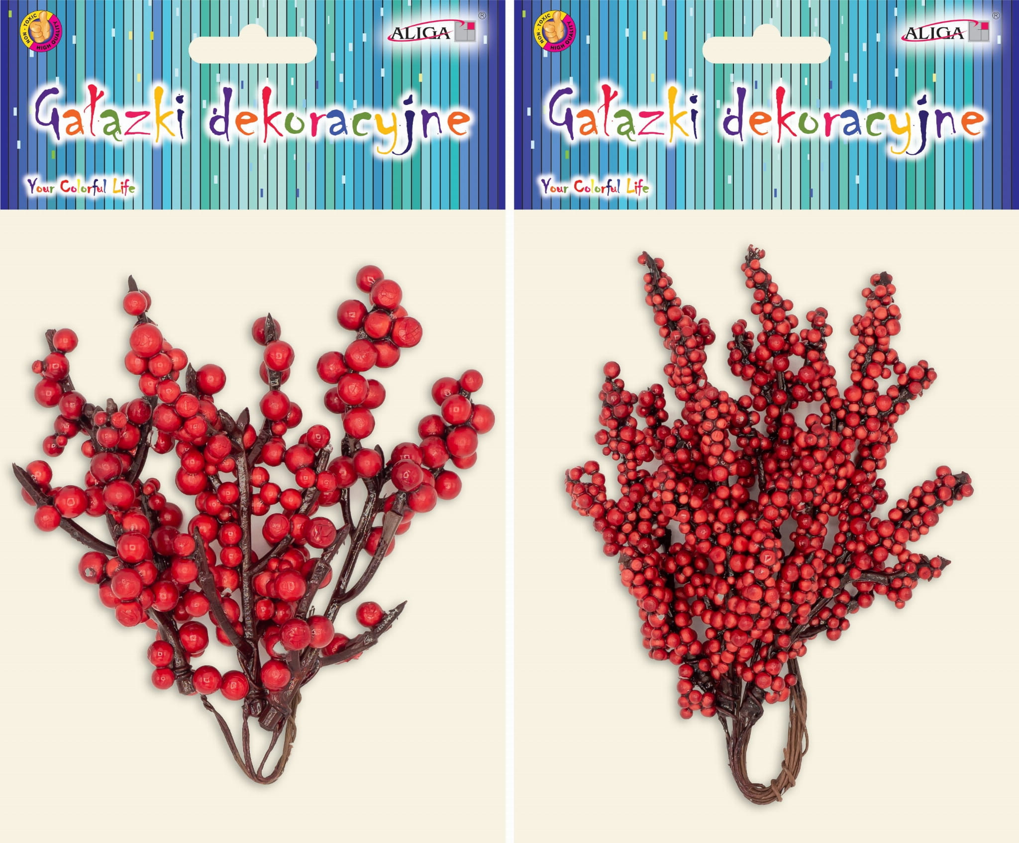 Gałązki dekoracyjne jarzębina czerwona mix wielkości 2 wzory x 3 gałązki, Aliga