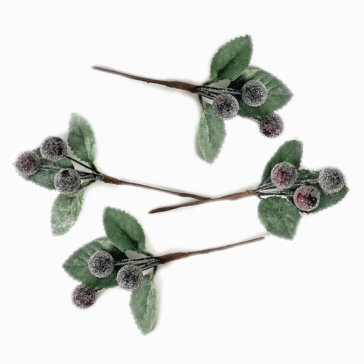 Gałązki szronione z jagodami bordowe 4 sztuki, Dp Craft
