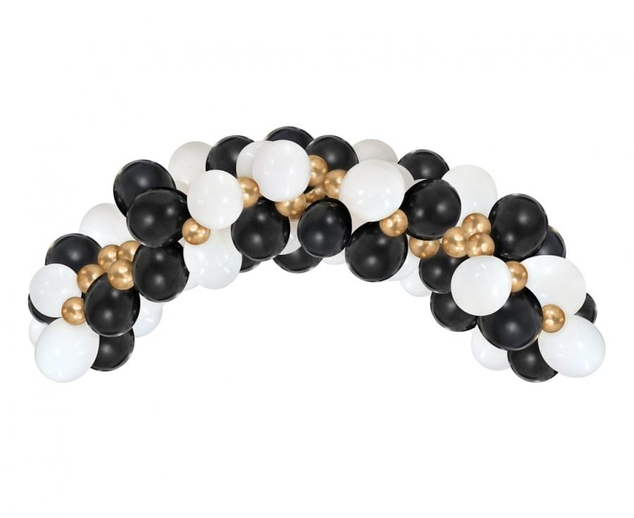 Girlanda balonowa w kolorze białym, złotym i czarnym z kolekcji Beauty&Charm. Stwórz zjawiskową kompozycję z balonów i przygotuj szampańską dekorację na urodziny, wesele, wieczór panieński, sylwestra i wiele innych okazji!