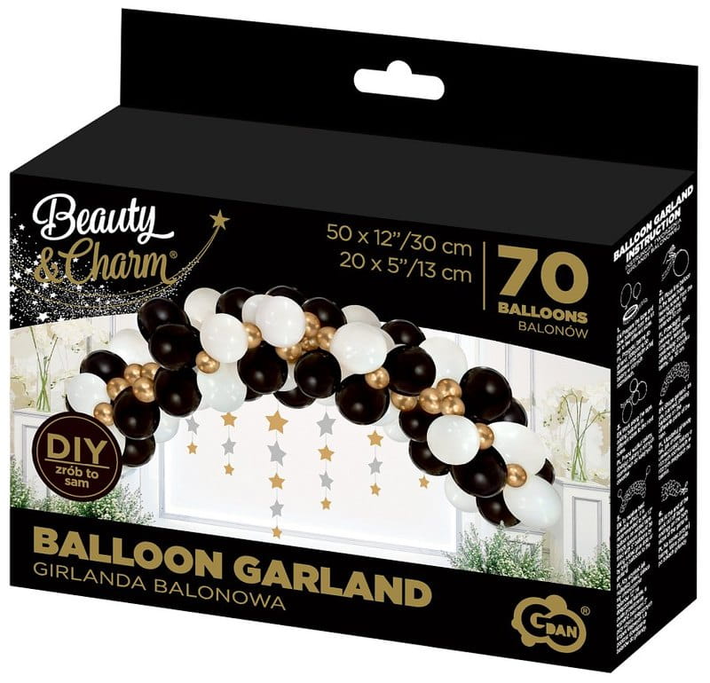 GIRLANDA BALONOWA BEAUTY&CHARM BIAŁO-ZŁOTO-CZARNA
