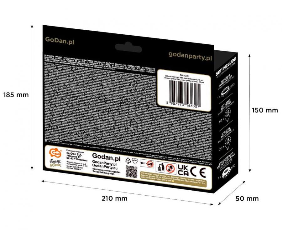Girlanda balonowa biało złoto czarna 70 balonów + taśma i kropki DIY, Godan
