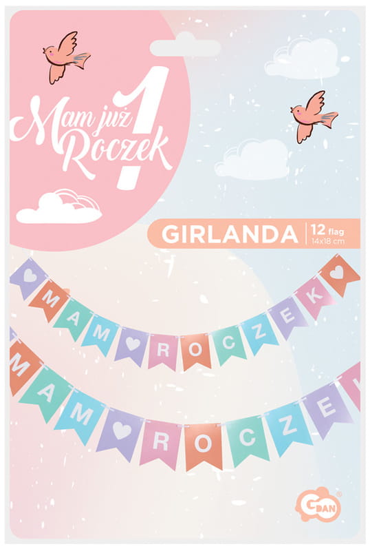 Girlanda dekoracja Mam roczek dla dziewczynki flagi 14x18 cm, GoDan