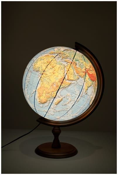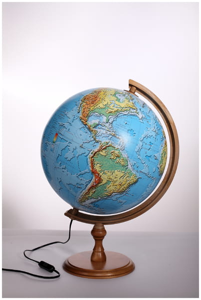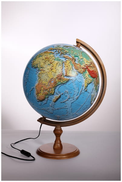 Globus 320mm Fizyczny 3D podświetlany drewniana niska stopka, Zachem