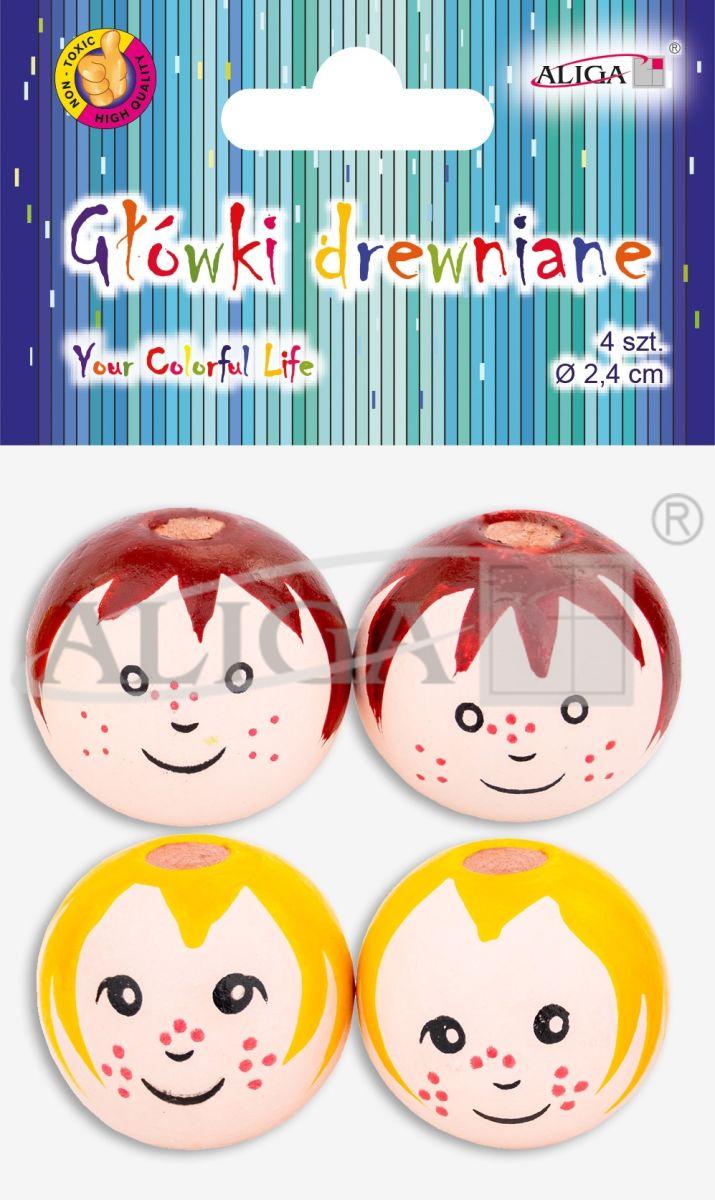 Główki drewniane twarz 2,4 cm 4 sztuki Wzór 2, Aliga