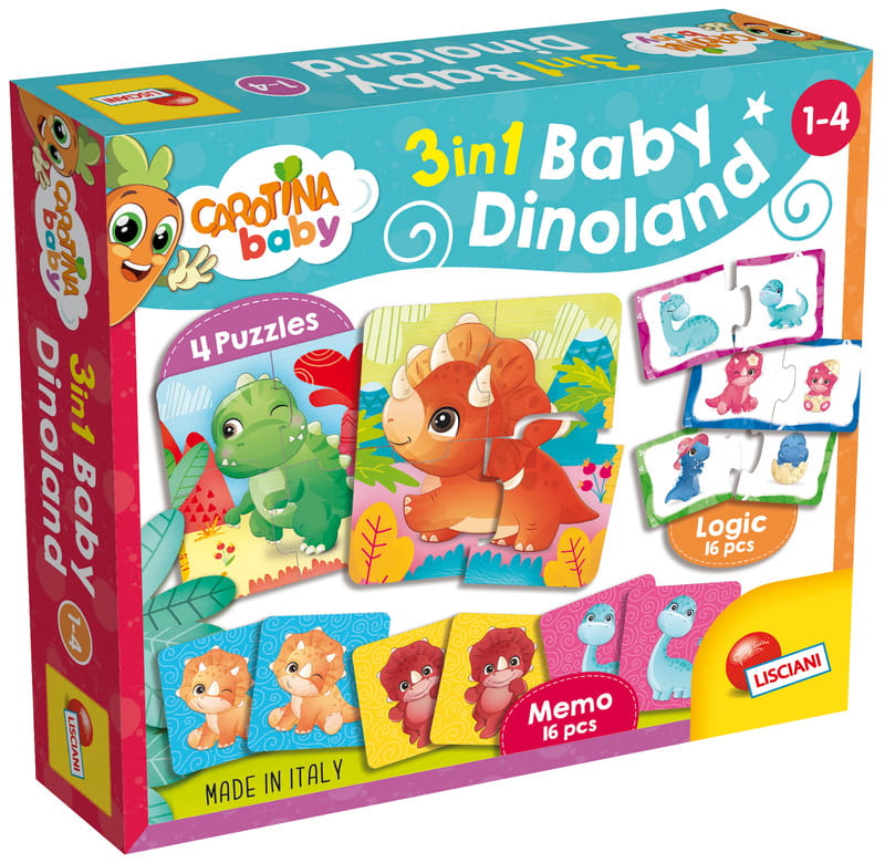 Gra, układanka i puzzle 3w1 Carotina Baby Dinoland, Lisciani