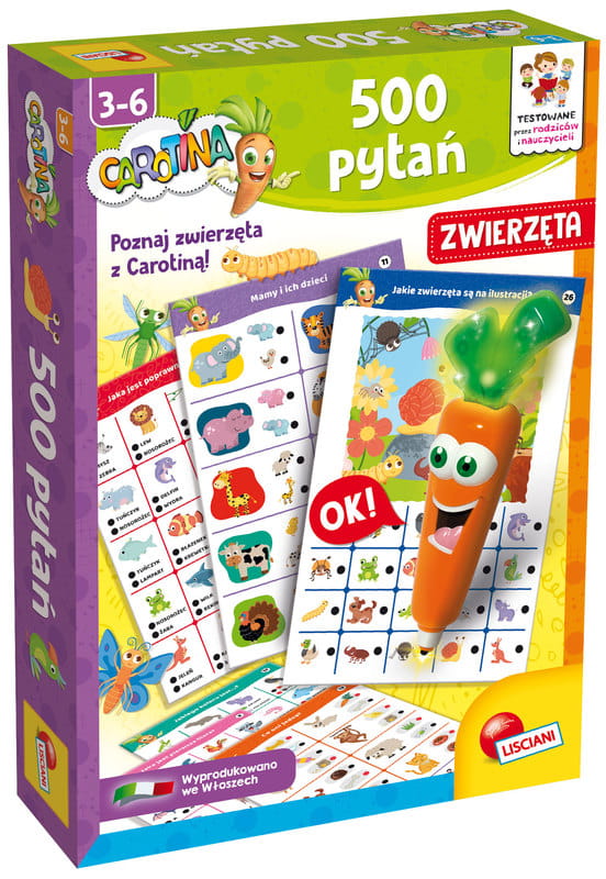 Gra edukacyjna Carotina 500 pytań zwierzęta, Lisciani