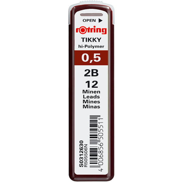 Grafity 0.5mm 2B fiolka 12 pręcików, Rotring