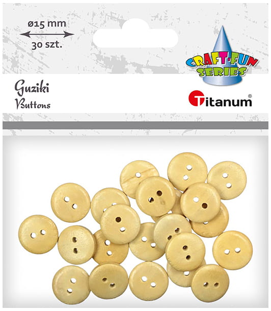 Guziki drewniane naturalne 30 sztuk 15 mm, Craft-Fun