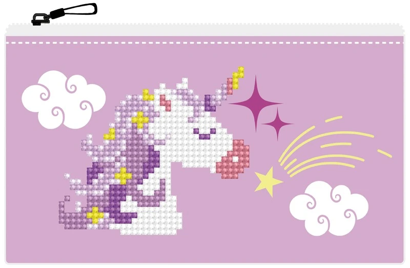 Zestaw do stworzenia spersonalizowanego piórnika z obrazkiem z haftu diamentowego. Układaj kolorowe diamenciki według oznaczeń i spakuj do piórnika swoje ulubione przybory szkolne! Zestaw zawiera 1 piórnik o wymiarach 21.5x14 do wyklejania diamencikami, diamenciki, tackę, wosk oraz specjalny rysik.