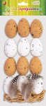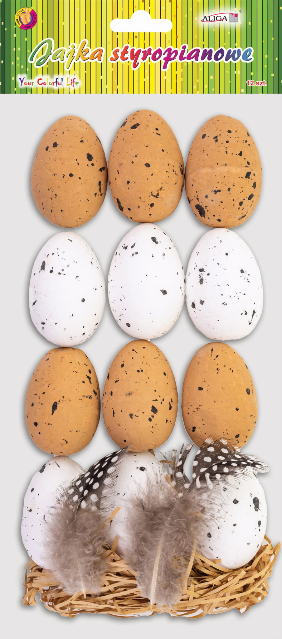 Jajka styropianowe nakrapiane z piórkami 5,5 cm 12 sztuk, Aliga