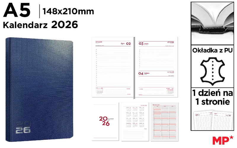 - Kalendarz z twardą okładką – idealny do personalizacji.