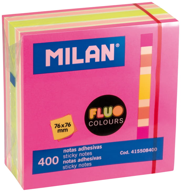Karteczki samoprzylepne 76 x 76 mm kostka fluo mix 400 szt. 415508400, Milan