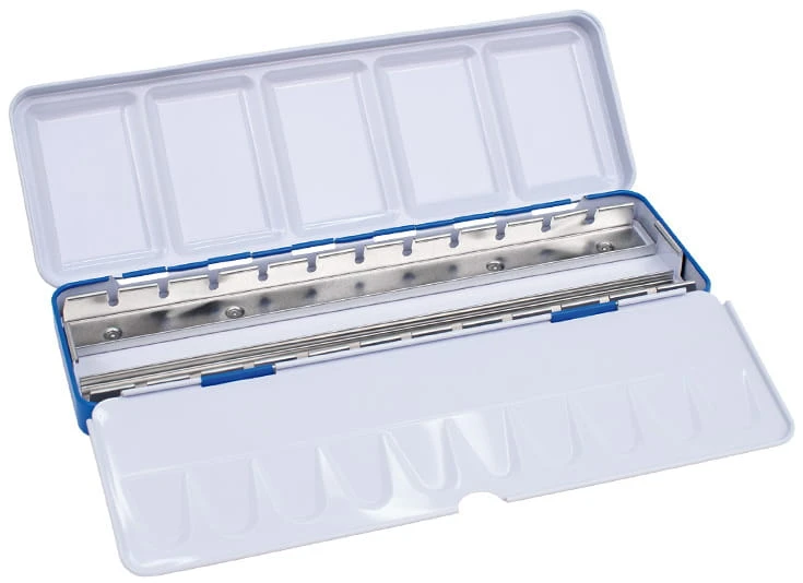 Metalowa kasetka bez zawartości, na 24 kostki farb akwarelowych