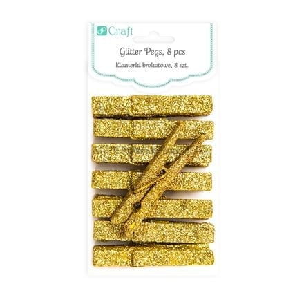 Klamerki brokatowe złote polecamy do zdobienia projektów scrapbookingowych, prac home decor oraz opakowań prezentowych. Wszystko się pięknie błyszczy i mieni tworząc niepowtarzalną atmosferę świąt. Wielkość: 4,8 cm Ilość w opakowaniu: 8 szt. Kolor: złoty brokat