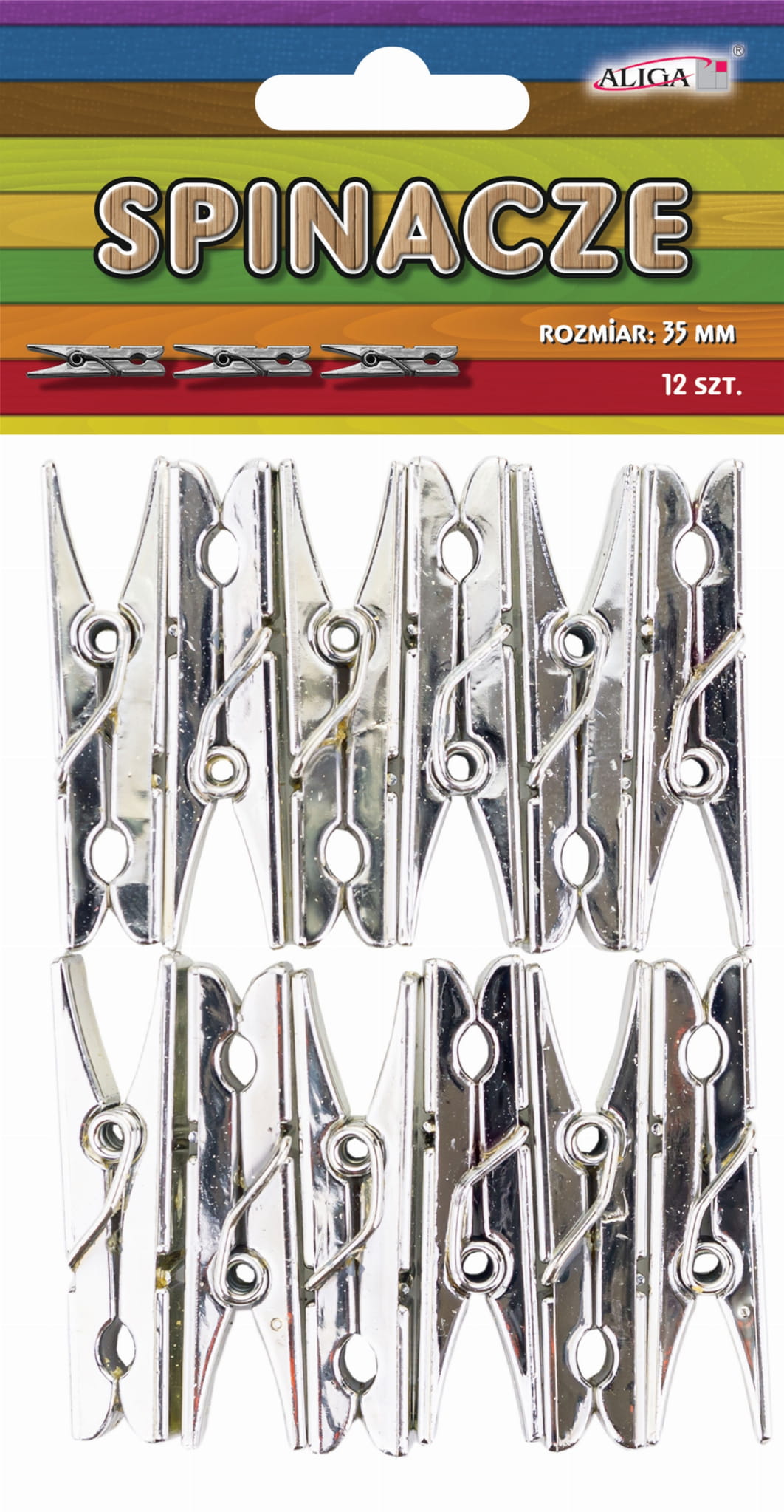 Klamerki drewniane metalizowane srebrne 3,5 cm 12 sztuk, Aliga