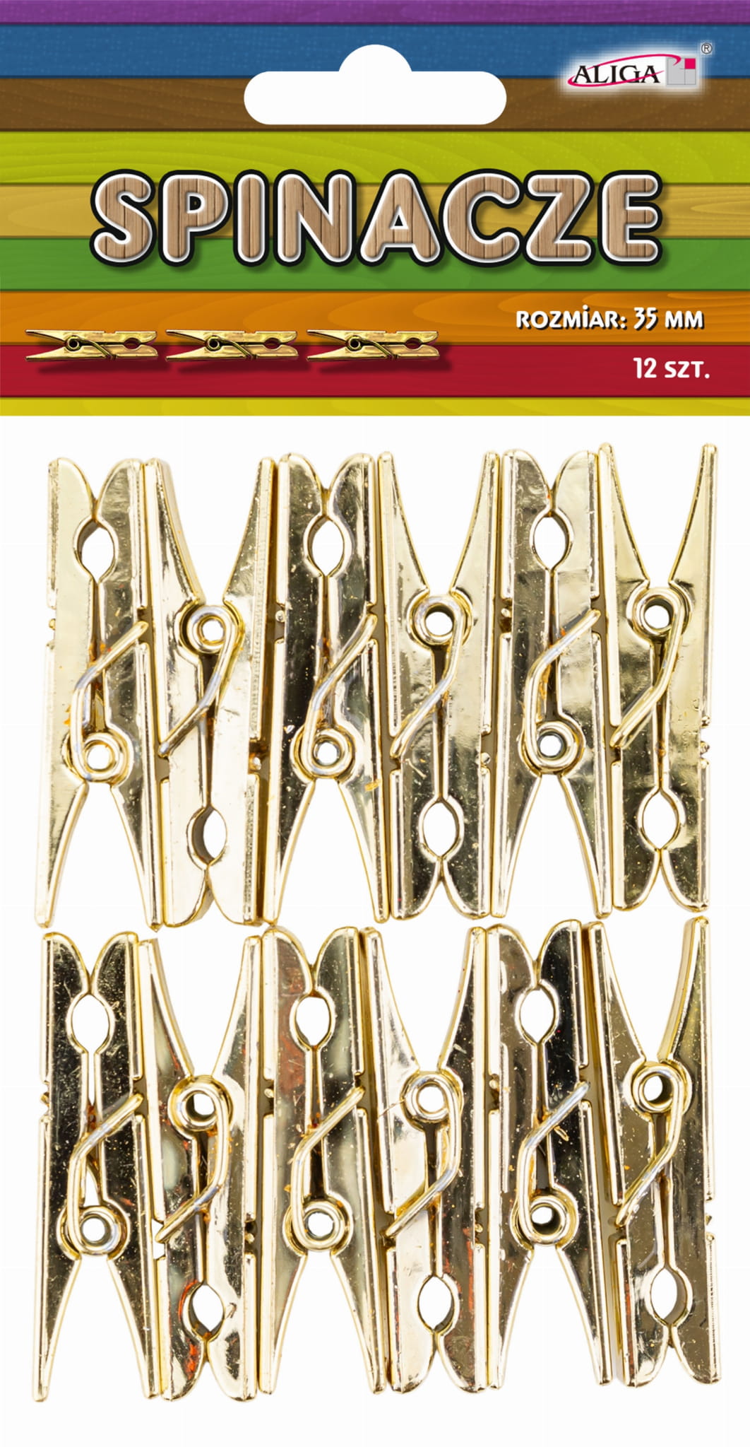 Klamerki drewniane metalizowane złote 3,5 cm 12 sztuk, Aliga
