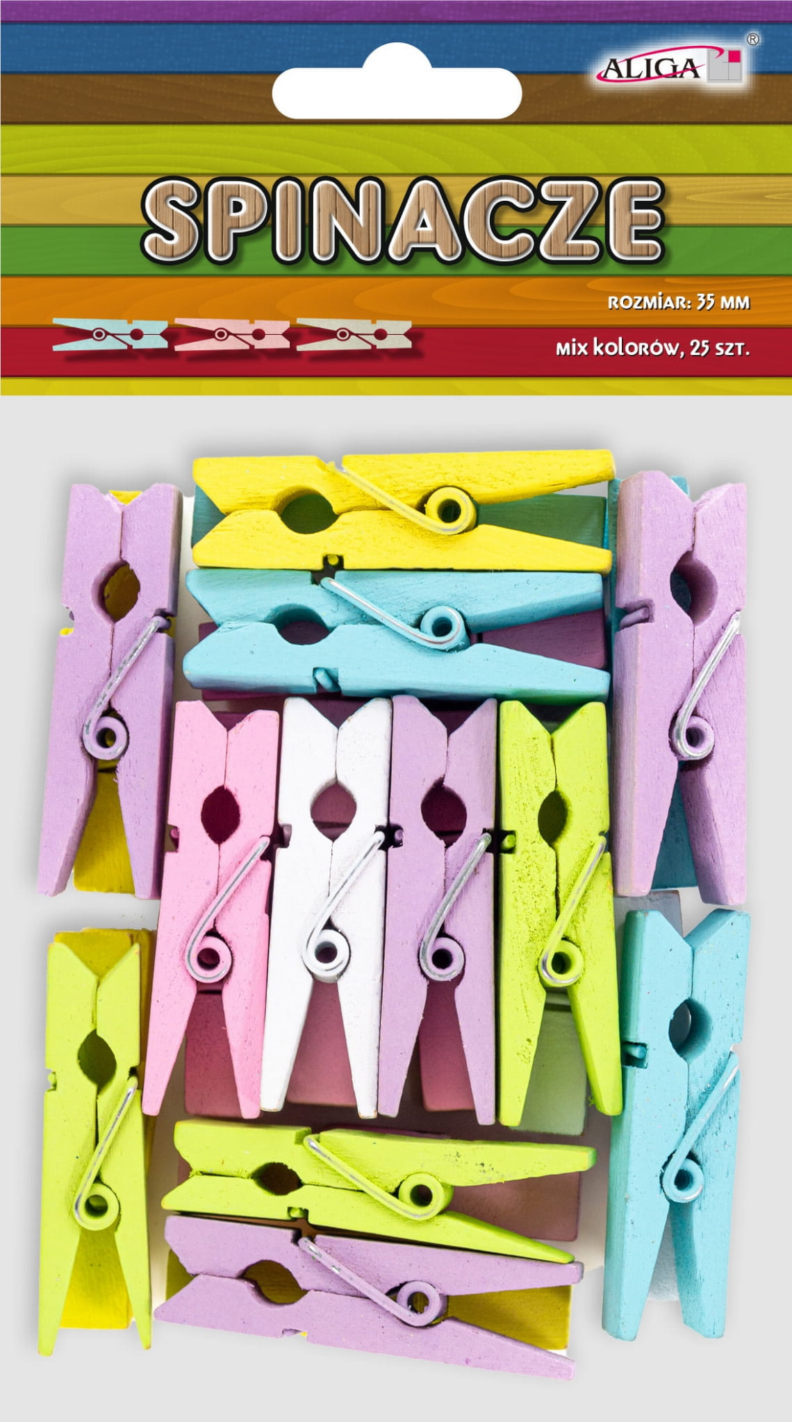 Klamerki drewniane spinacze kolorowe 3,5 cm 25 sztuk, Aliga