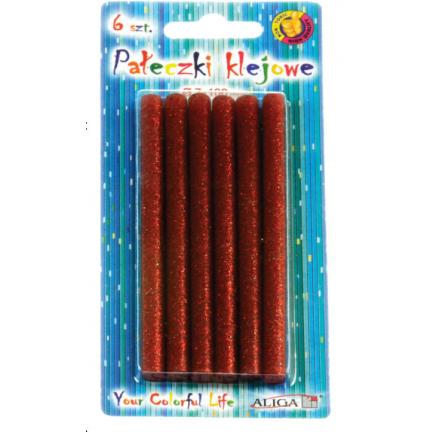 Pałeczki klejowe. Rozmiar 7 x 100mm. 6szt na blistrze. Czerwone z brokatem