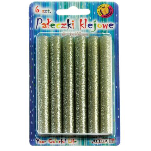 Pałeczki klejowe. Rozmiar 11 x 100mm. 6szt na blistrze. Srebrne z brokatem