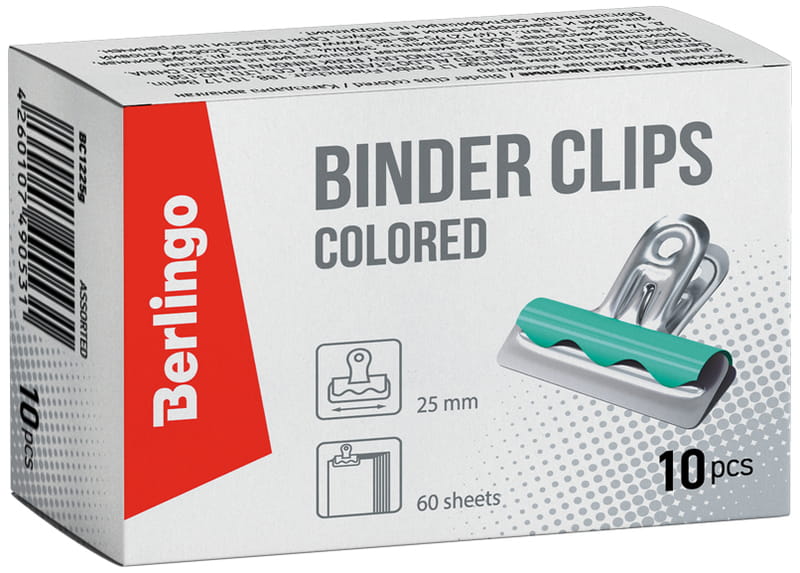 Klipy Buldog , 25mm, kolorowe, 10 szt., Berlingo