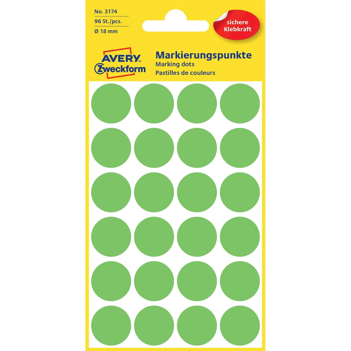 Kolorowe kółka do zaznaczania 18 mm zielone fluo 96 sztuk Avery Zweckform