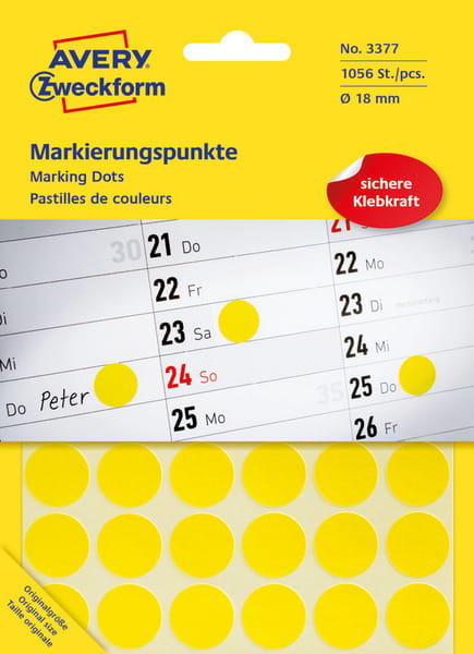 Kolorowe kółka do zaznaczania 18 mm żółte 1056 sztuk Avery Zweckform