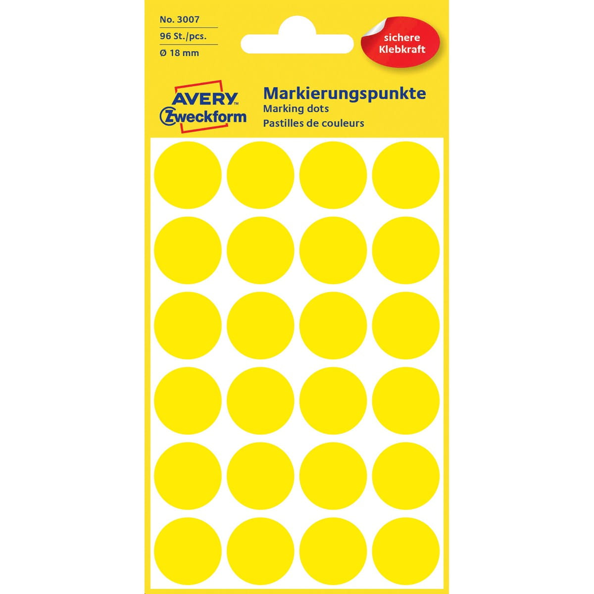 Kolorowe kółka do zaznaczania 18 mm żółte 96 sztuk Avery Zweckform