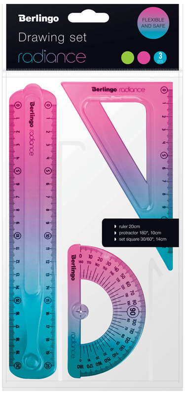 Komplet geometryczny 3-el. Linijka, ekierka, kątomierz Radiance, różowo-niebieski, Berlingo