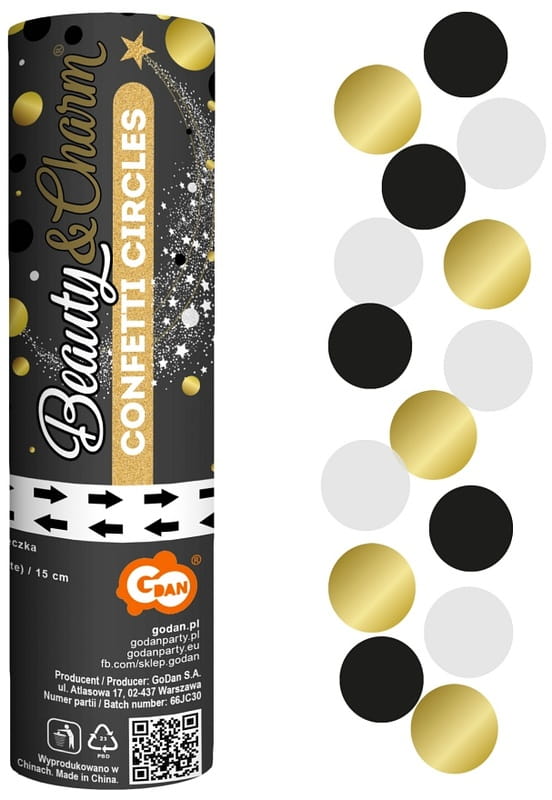 Konfetti pneumatyczne B&C Kółeczka (czarne, złote, białe) 15 cm, Godan
