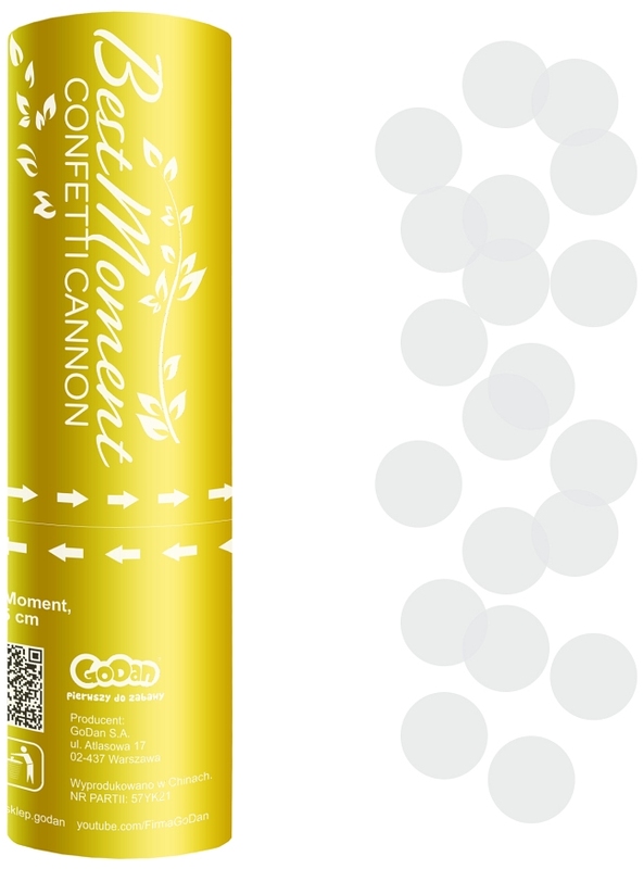 Konfetti pneumatyczne Best Moment, kółeczka papierowe białe, 15cm, GoDan
