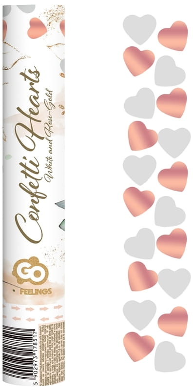Konfetti pneumatyczne tuba Różowo-złote i białe Serca 30 cm, GoDan