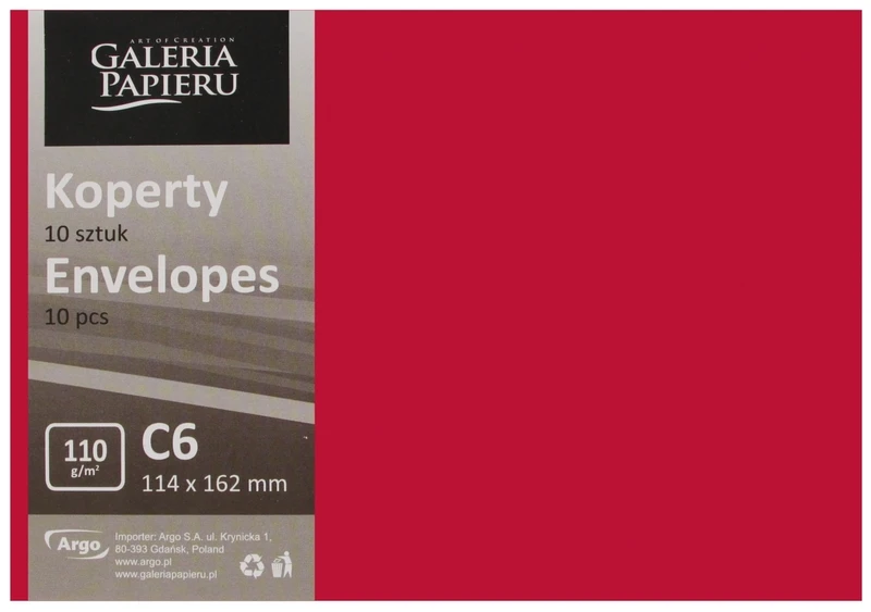 Koperta C6 Gładki mix czerwień i zieleń K., 110g/m2, op. 10szt., Galeria Papieru
