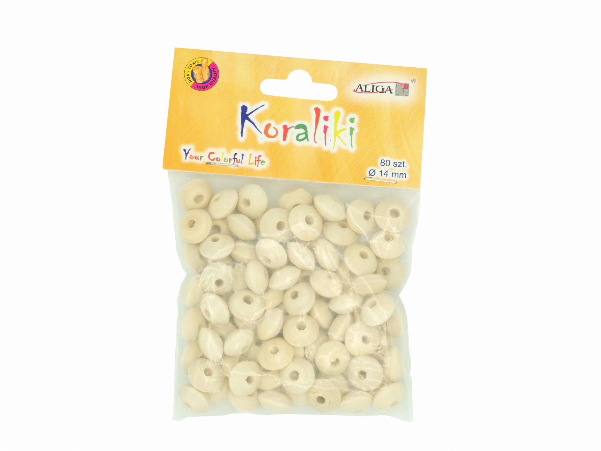 Koraliki drewniane płaskie 14 mm 80 sztuk, Aliga