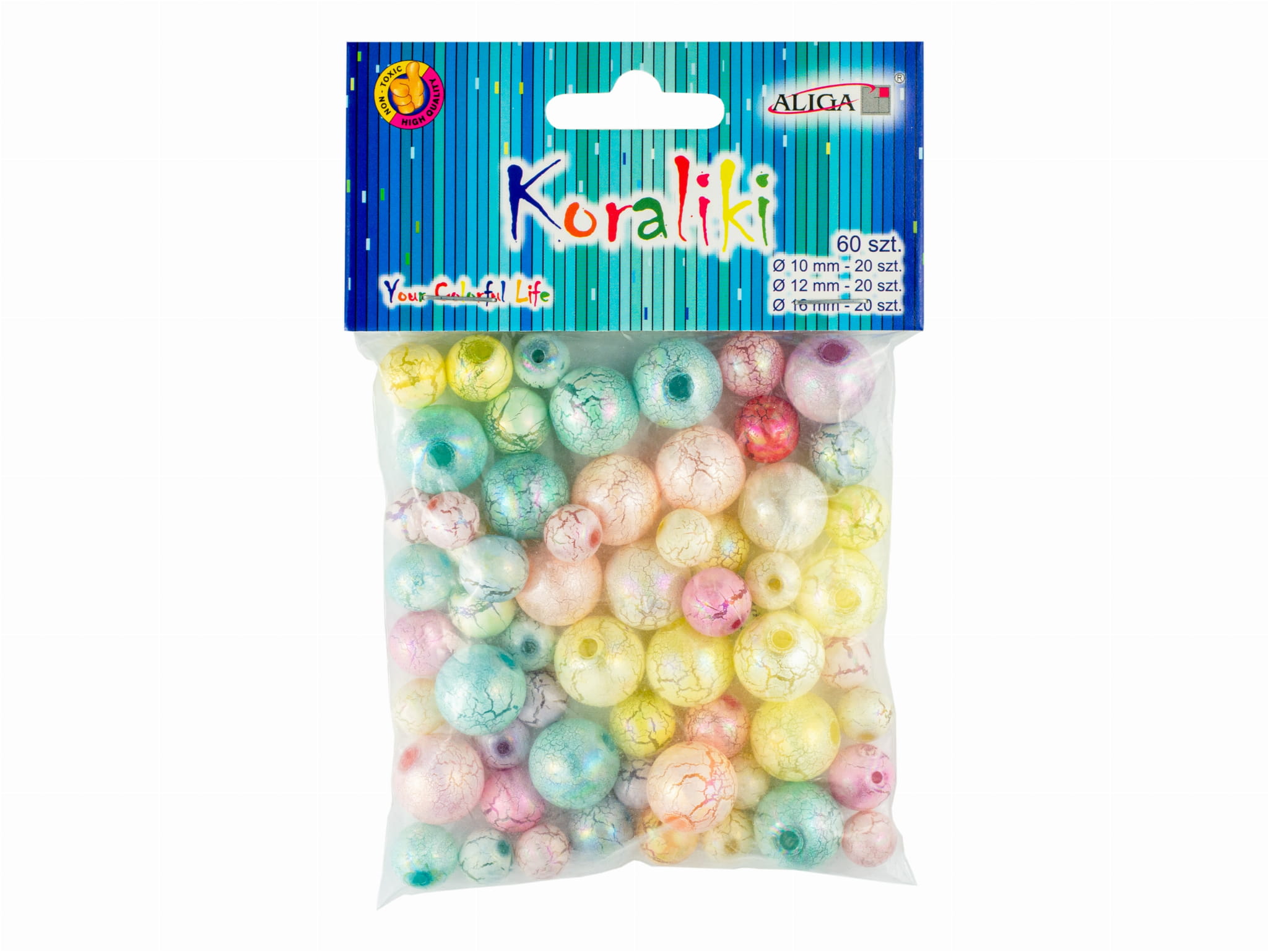 Koraliki kolorowe Crackle 60 sztuk mix wzorów i rozmiarów, Aliga