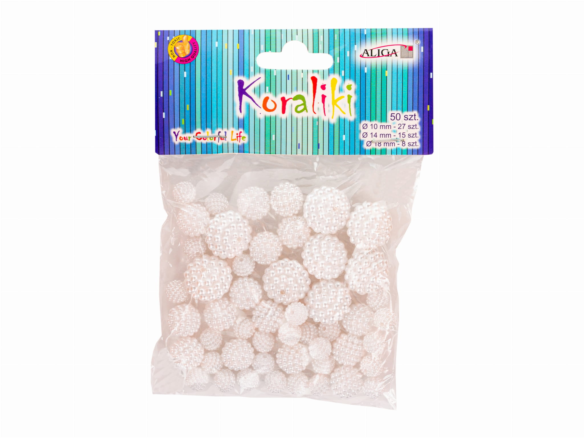 Koraliki perłowe białe 50 sztuk mix wielkości, Aliga