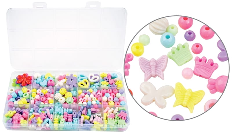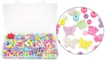Koraliki plastikowe kolorowe w pudełku mix kształtów i kolorów ok. 330 sztuk, Aliga